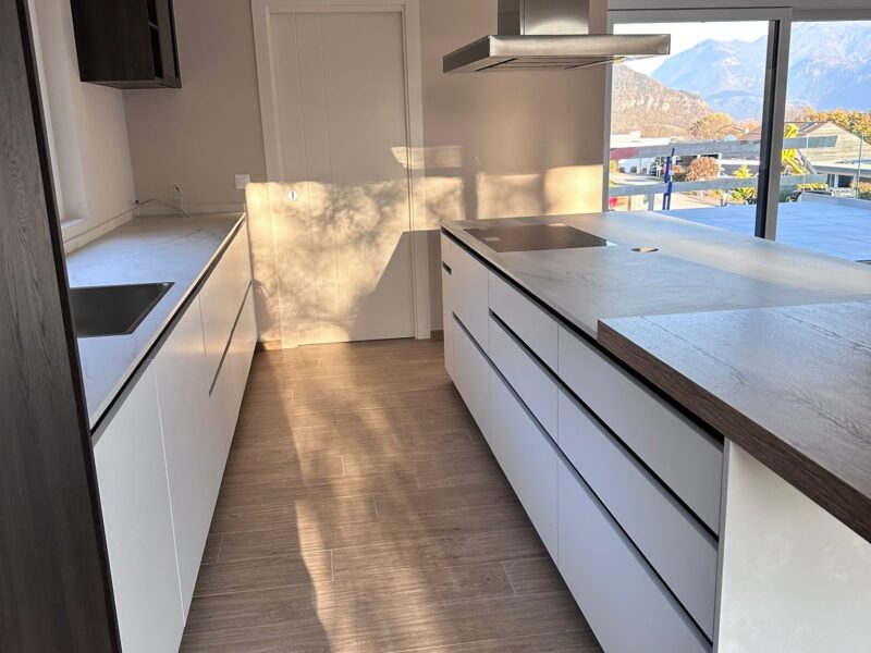 Una casa nuova, progettata con un’estetica che richiama la razionalità e l’equilibrio delle geometrie dell’architettura di Le Corbusier, sorge in armoniosa fusione con il paesaggio sulle colline della capitale del Canton Vallese, in Svizzera. Qui, ogni dettaglio architettonico è stato pensato per valorizzare la relazione tra spazi interni ed esterni, enfatizzando luce, funzionalità e materiali pregiati. Questo contesto unico ha ispirato la realizzazione su misura di una cucina che riflette lo stesso spirito razionale ed elegante, integrandosi perfettamente con lo stile essenziale e sofisticato della residenza.